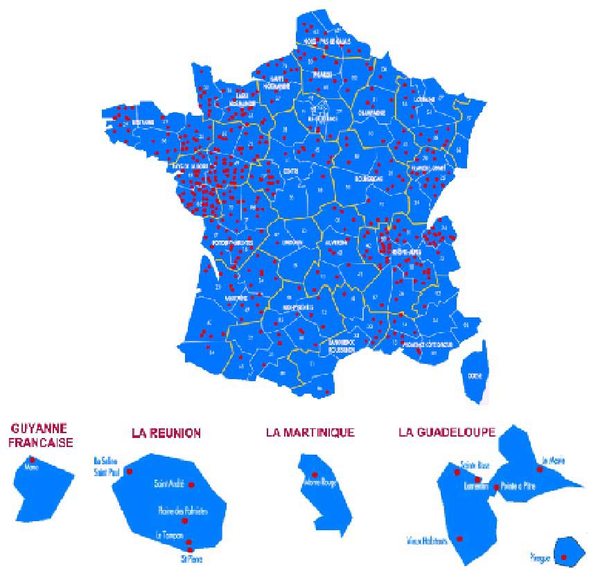 Les Maisons Familiales Rurales sont présentes partout en France. 450 établissements accueillent environ chaque année 50 000 jeunes en formation. Le réseau national est structuré en fédérations : Une Union Nationale à Paris www.mfr.asso.fr Une Fédération Régionale www.mfraquitaine.fr Une Fédération Départementale www.mfr-gironde.fr